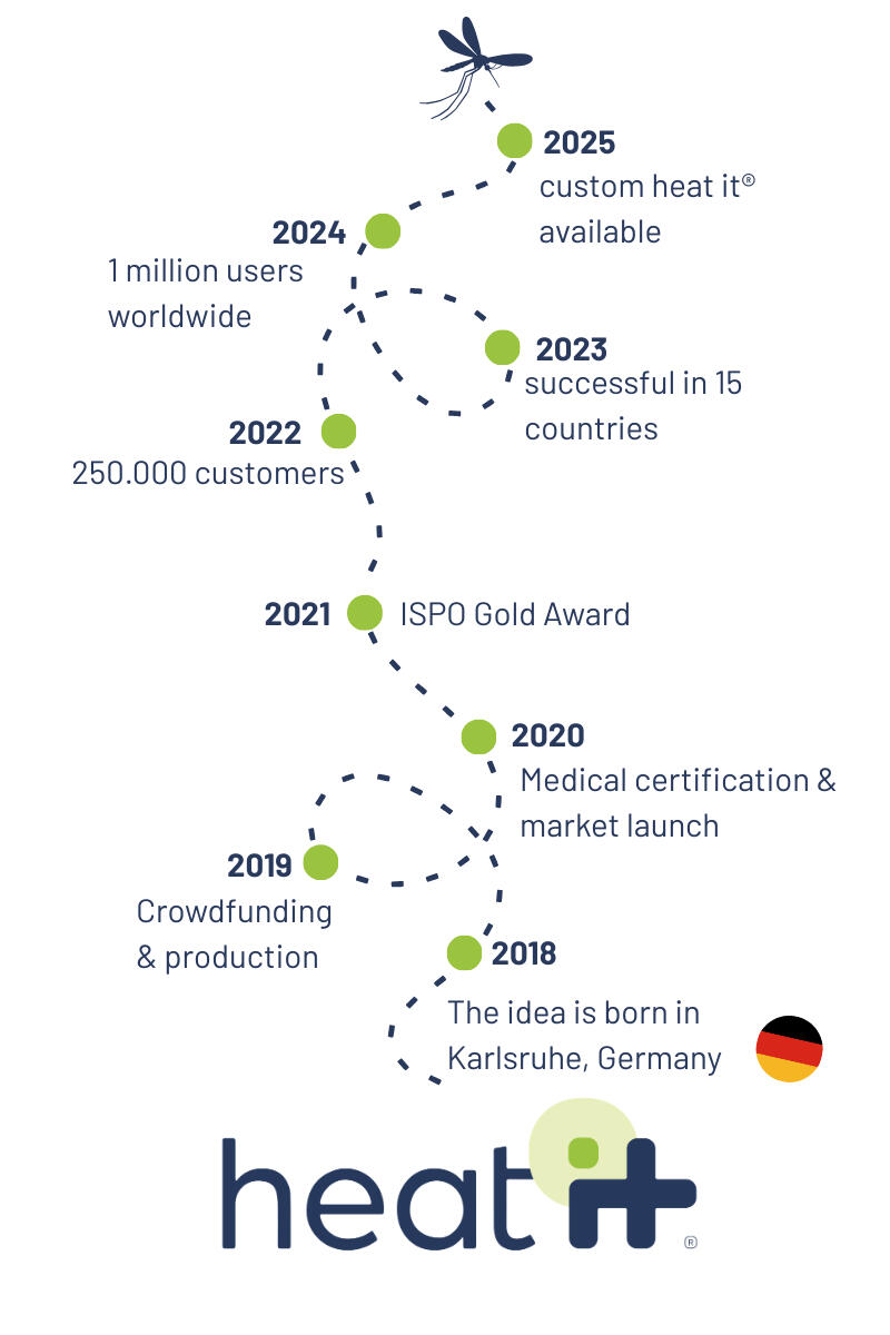 Like many great ideas, ours arose from a problem: itchy insect bites, with no good, natural solution. What began as a student idea grew into an international success with medical certifications, awards, and millions of satisfied users worldwide.Despite this growth, we've never forgotten our roots. We're incredibly proud that we've kept production in-house: every heat it® is still manufactured in Germany.