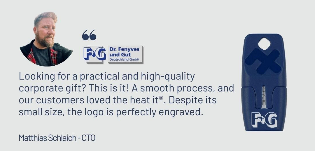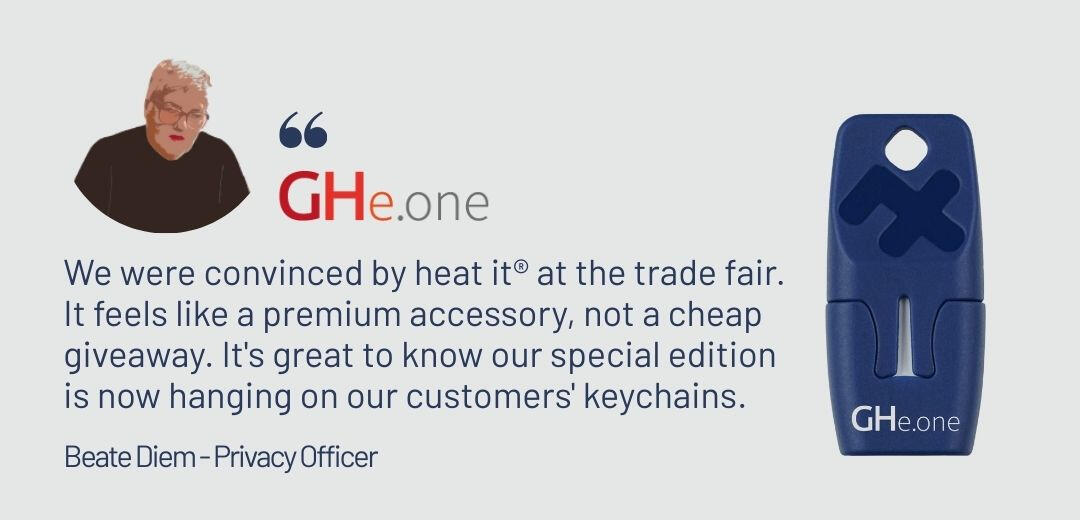 Let's be honest: most corporate gifts are tossed away or disappear deep into a drawer, only to resurface during a house clean-up. With heat it®, you’re giving something different. Something of value that actually gets used. Something that gets shared, hangs on keychains or lanyards, and is taken along on every adventure.And your brand is right there. Always close, always visible and ready to help.